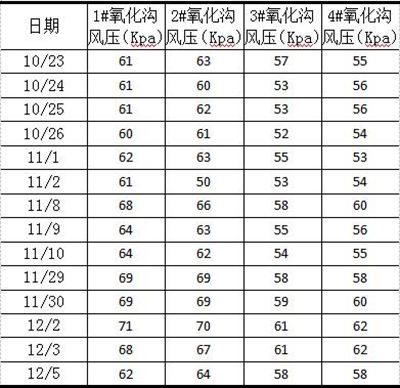 表2 各氧化沟运行风压数据